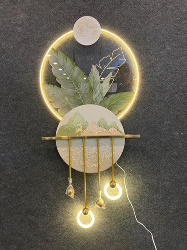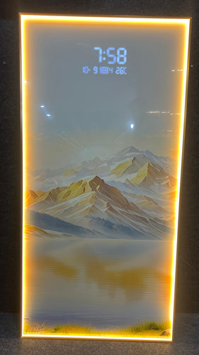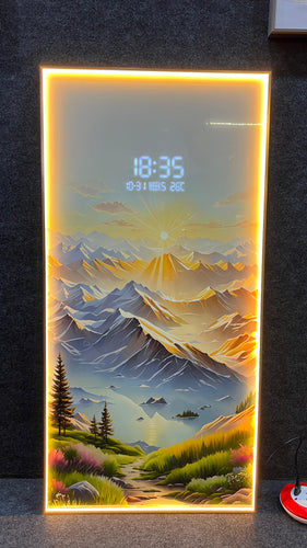Moonlight Mountain Art with Integrated Digital Clock and Weather Display