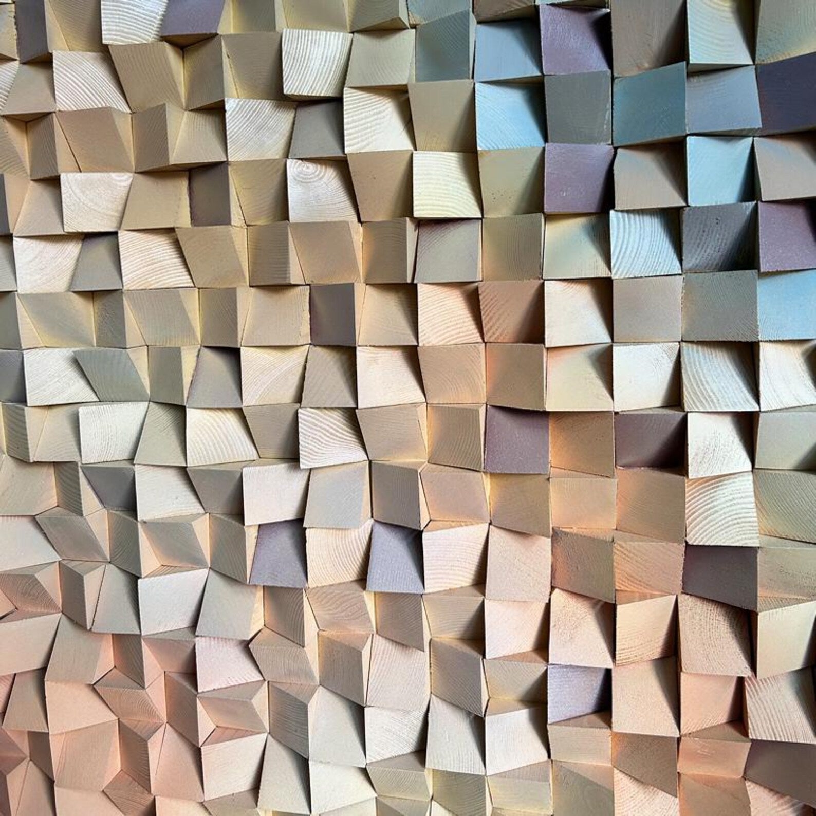 *** Please note that custom-made panels may and will be different from the original, presented on the photo. The texture of wood, colors and shades of coloring can not be copied, each time it is an individual work and a completely unique product, but with the desire for the original idea. Pieces are made of one size elements, and their number will be different depending from the size. Dimensions of finished products can change for +/- 1'' (2,5 cm).