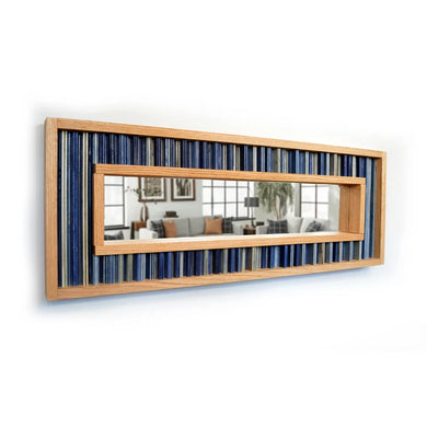 Modern Reclaimed Pine and Navy Blue Striped Wood Mirror Mosaic Wall Decor