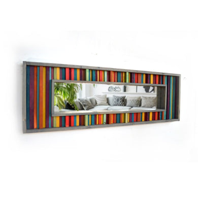 Red, Yellow, Purple and Teal Striped Reclaimed Wood Mirror Mosaic Wall Decor