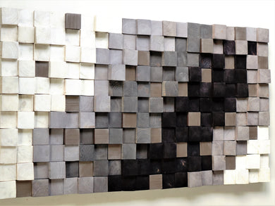 White Blue Shades of Gray Wood Mosaic Wall Decor