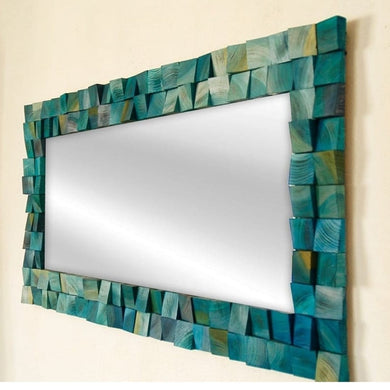 WONDERFUL EMERALD COPPER WOOD MOSAIC WALL DECOR