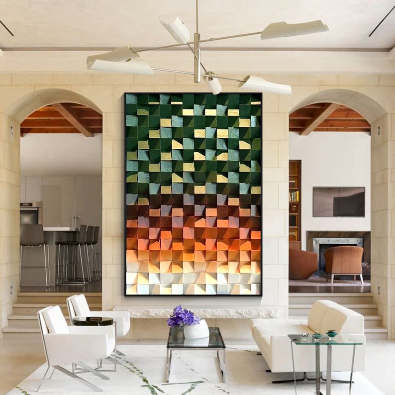 Add bold, organic texture to your space with this Emerald Green Mosaic Wood Wall Art, a huge geometric sculpture crafted from reclaimed wood blocks. The rich emerald tones and precise mosaic layout create a stunning visual rhythm—perfect for modern, rustic, or abstract interior styles. Whether you're decorating a living room, entryway, or office, this handmade wall piece makes a dramatic statement while showcasing eco-conscious craftsmanship and artistic flair. It’s not just decor—it’s wall sculpture that tells a story.